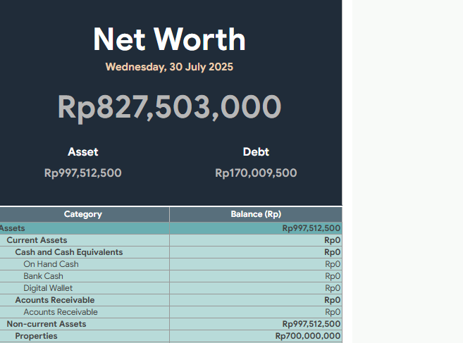 Dengan mengupdate data tiap bulan, kamu bisa lihat tren naik-turunnya kekayaanmu.