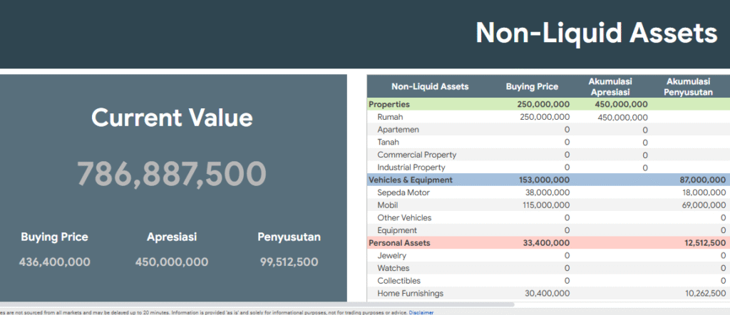 - Aset Non-Likuid: tanah, rumah, kendaraan, barang koleksi